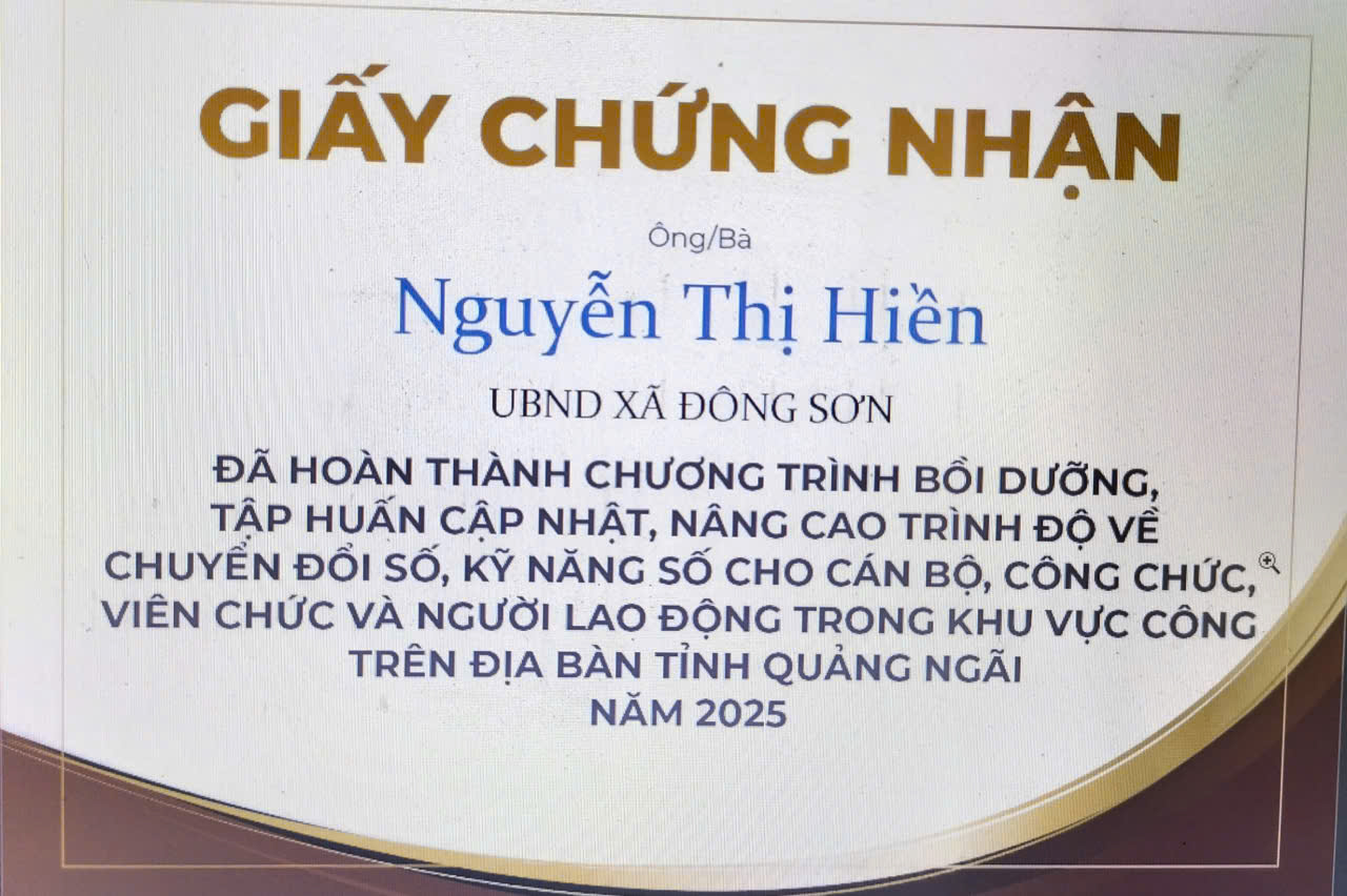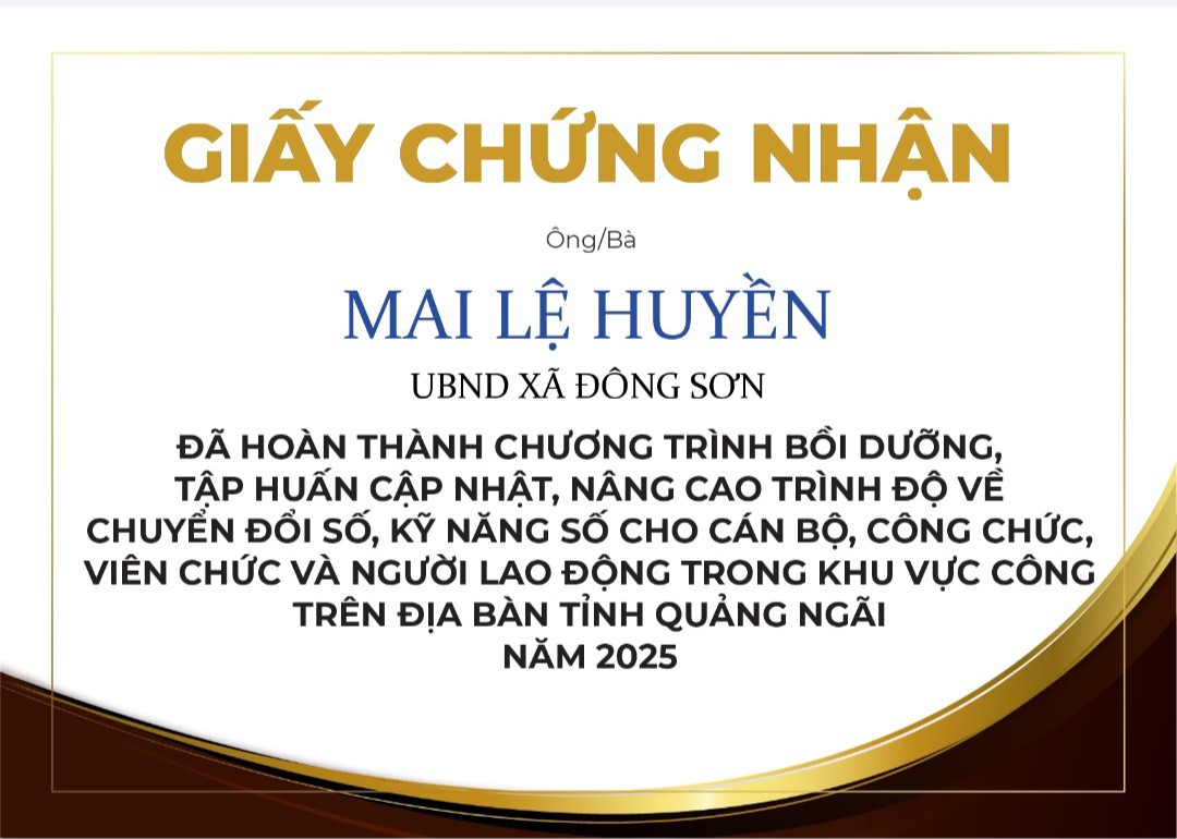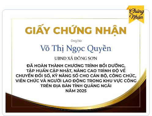Chứng nhận bồi dưỡng, tập huấn về Chuyển đổi số, kỹ năng số của trường Tiểu học số 2 Bình Châu