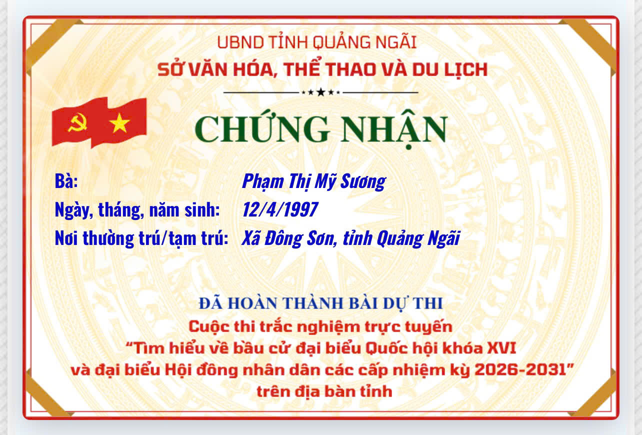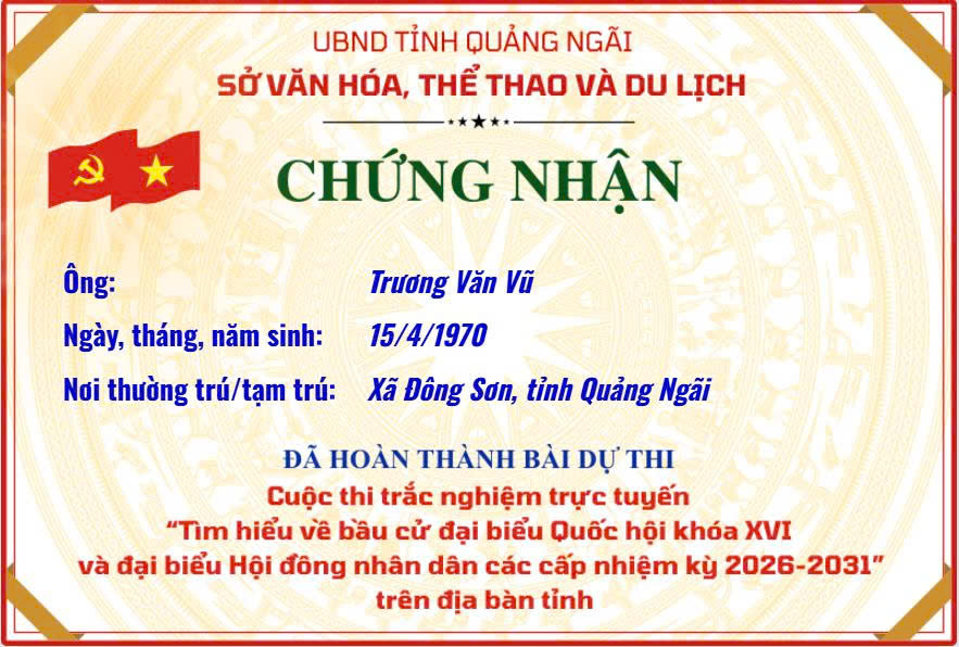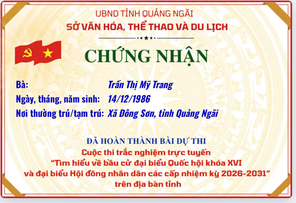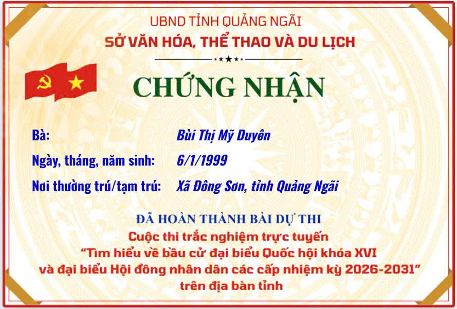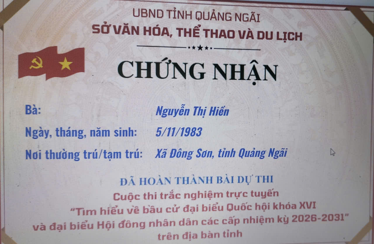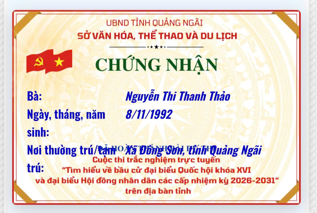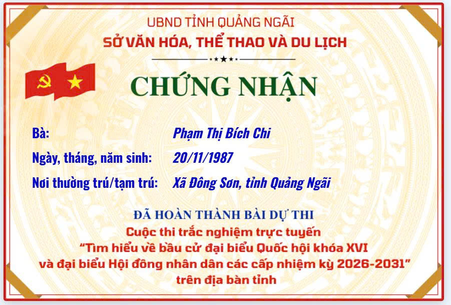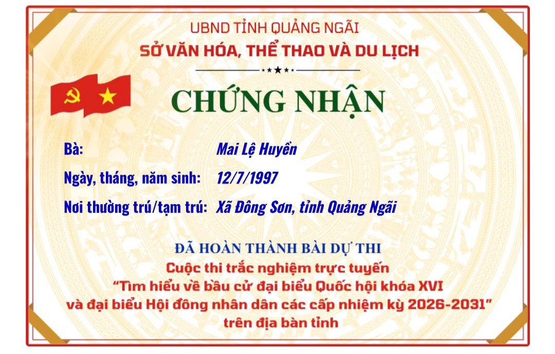 Chứng nhận “Tìm hiểu về bầu cử đại biểu Quốc hội khóa XVI và đại biểu Hội đồng nhân dân các cấp nhiệm kỳ 2026–2031”