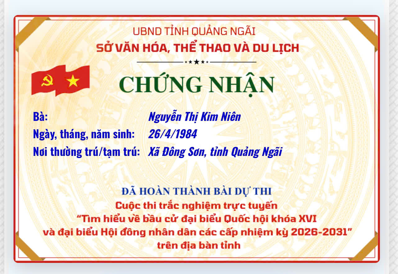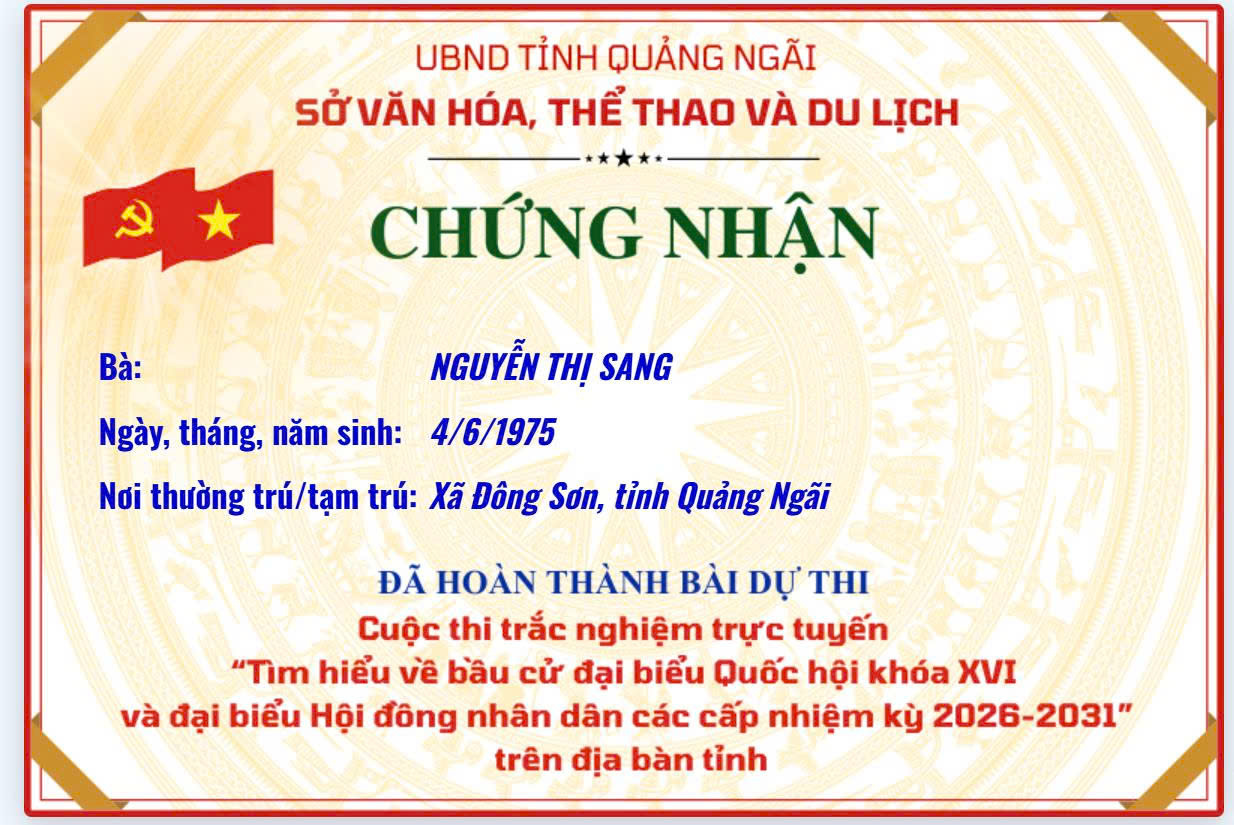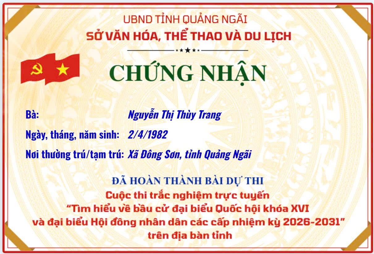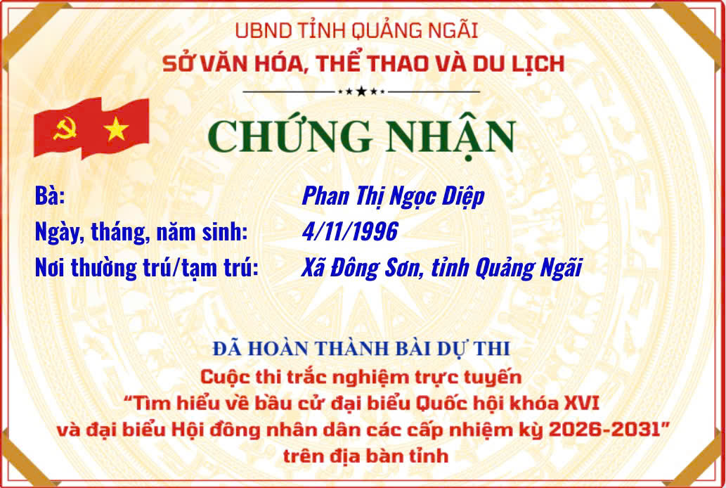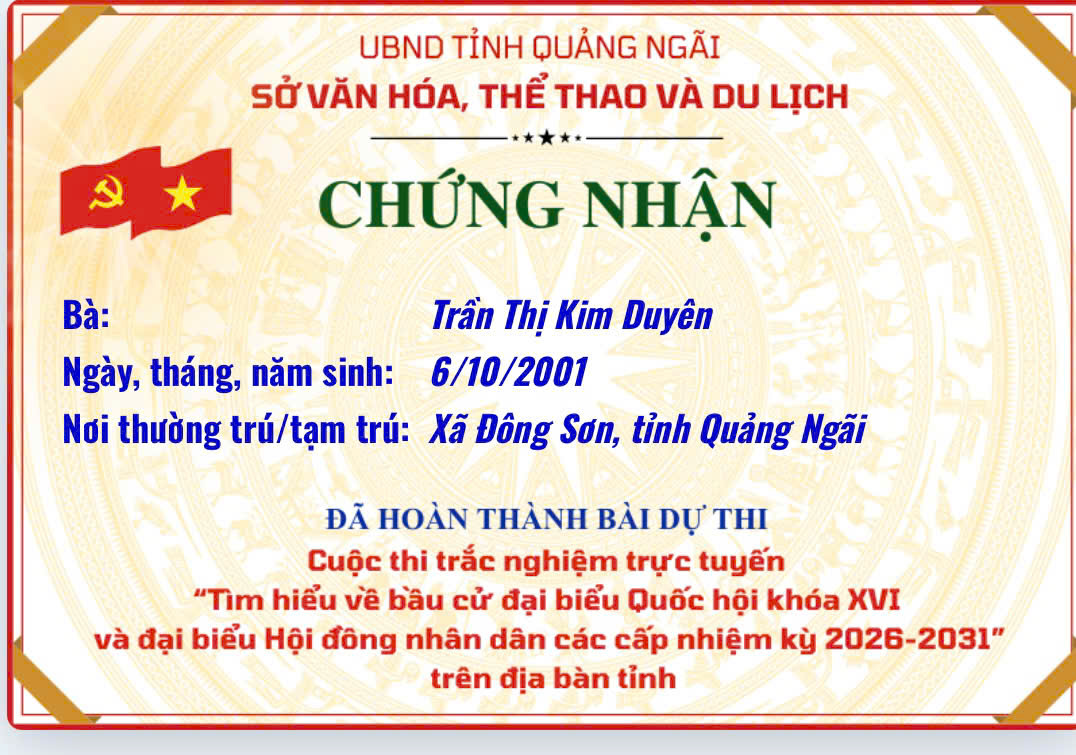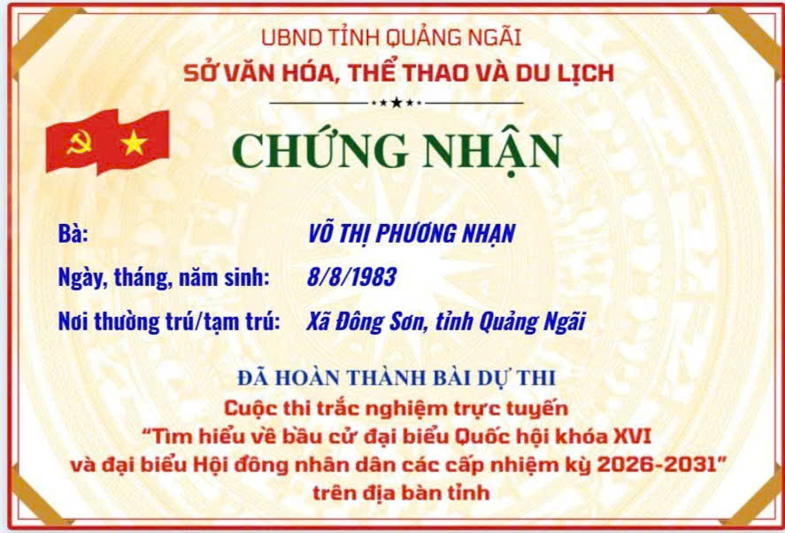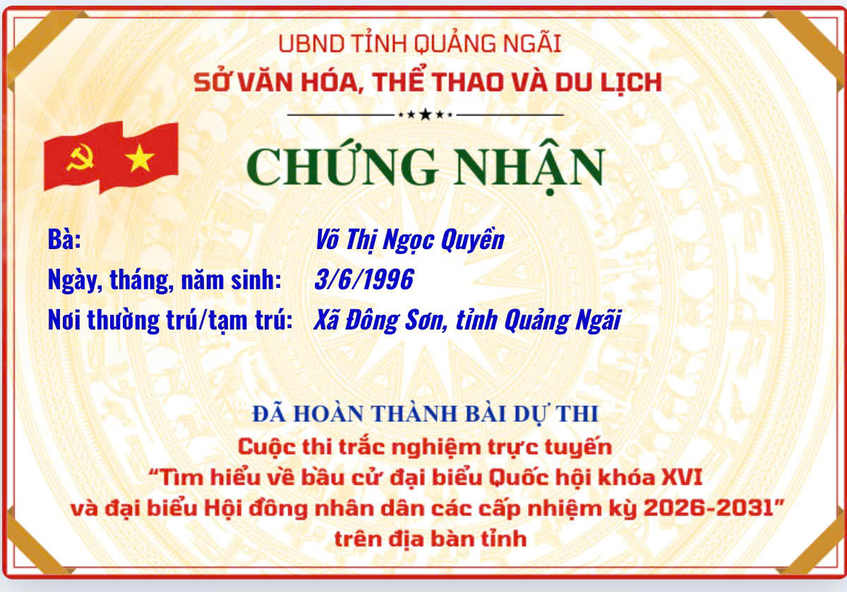 Chứng nhận “Tìm hiểu về bầu cử đại biểu Quốc hội khóa XVI và đại biểu Hội đồng nhân dân các cấp nhiệm kỳ 2026–2031”