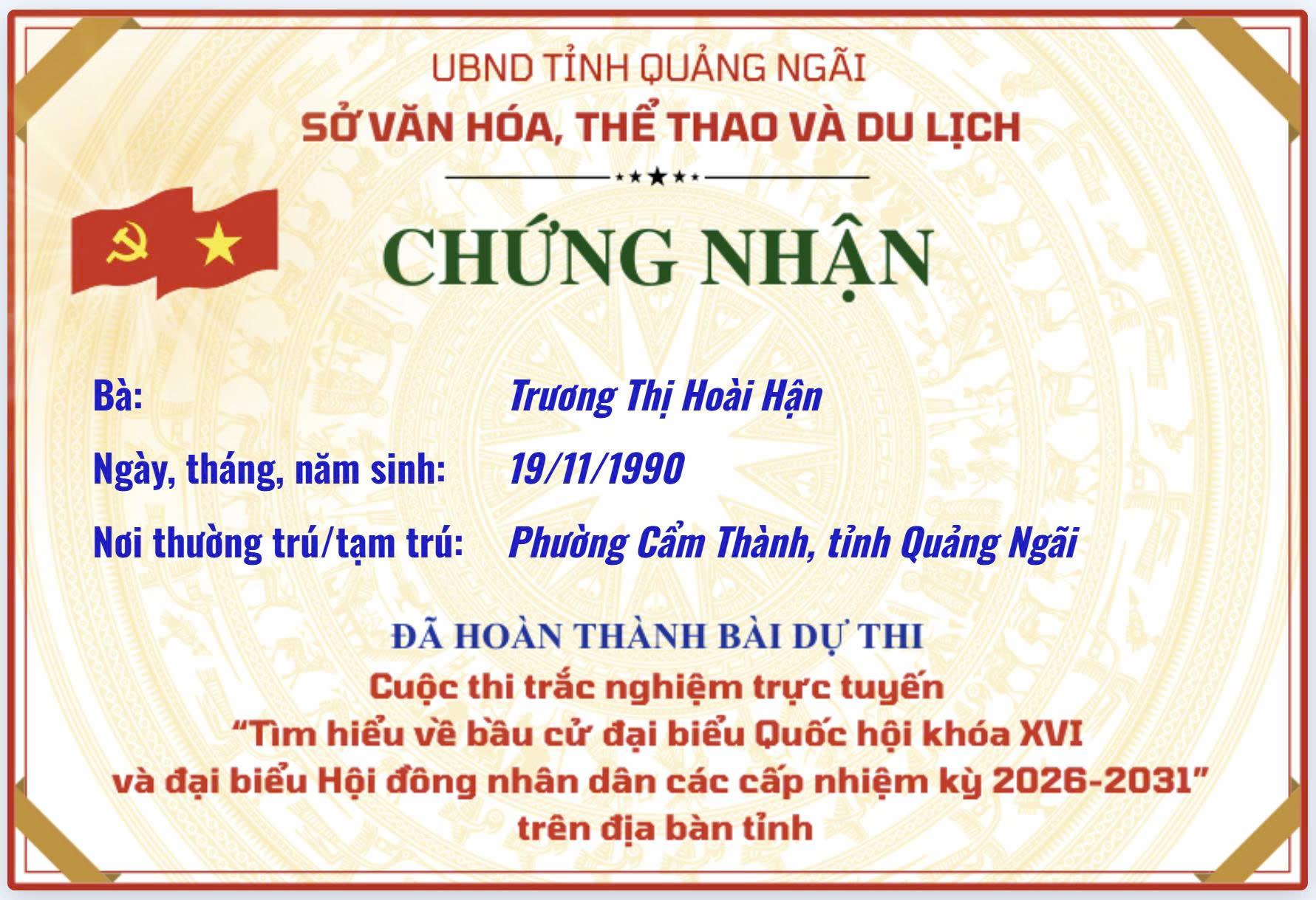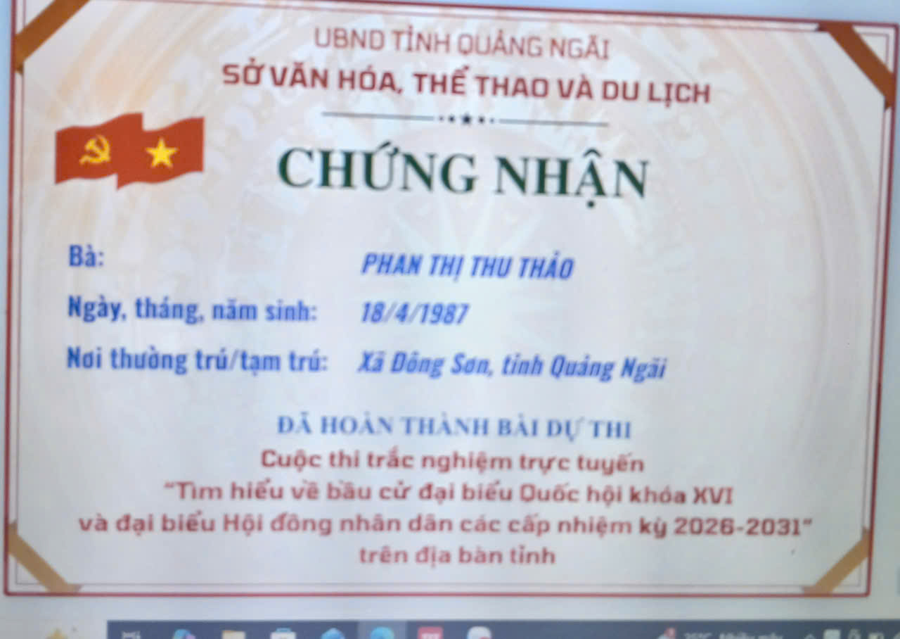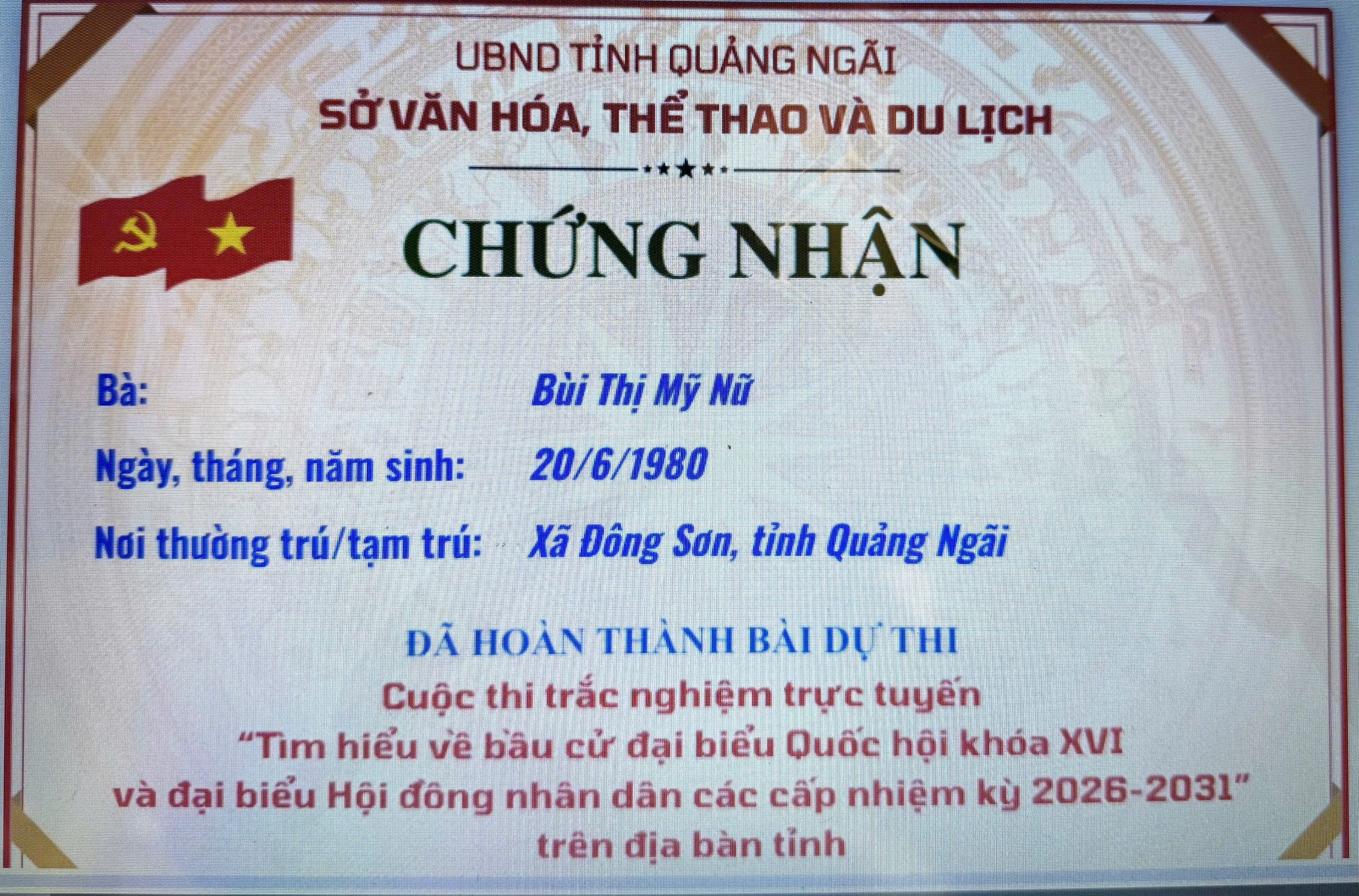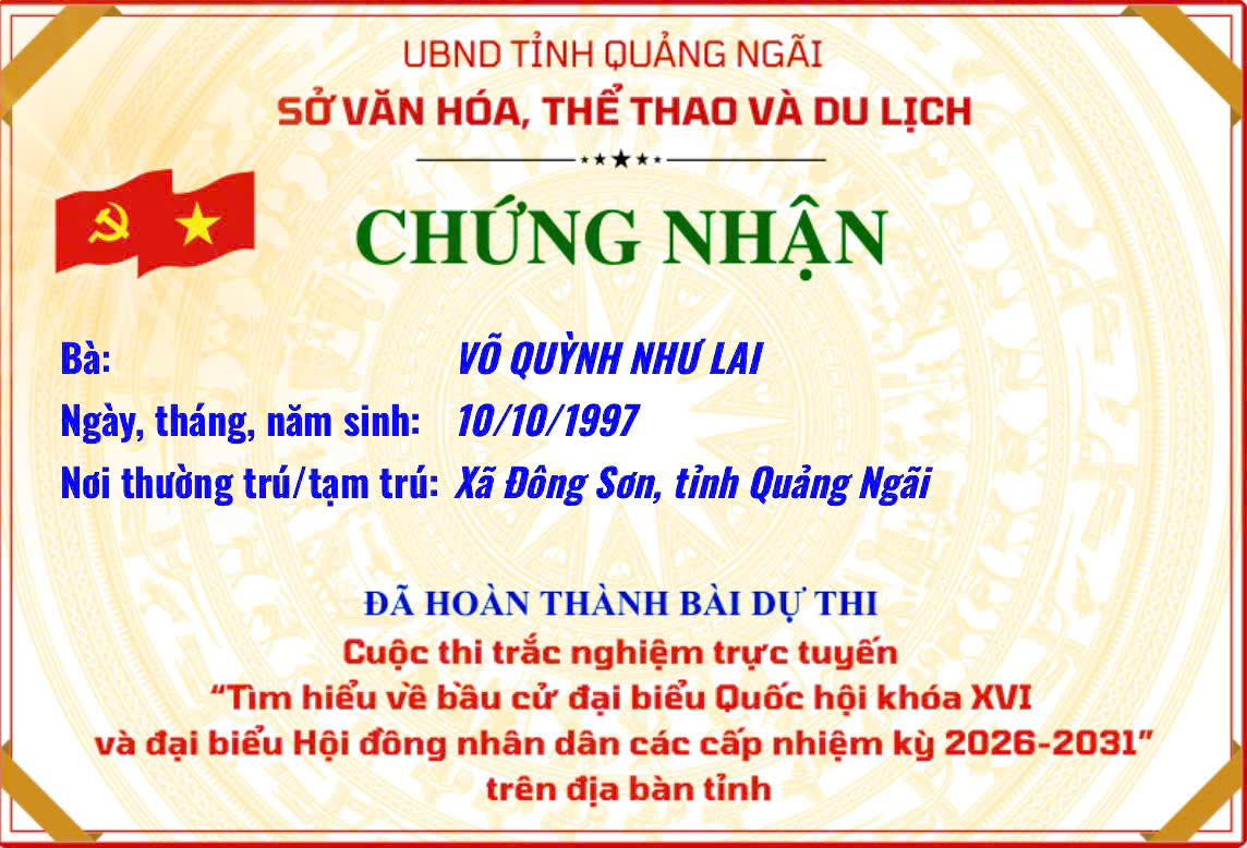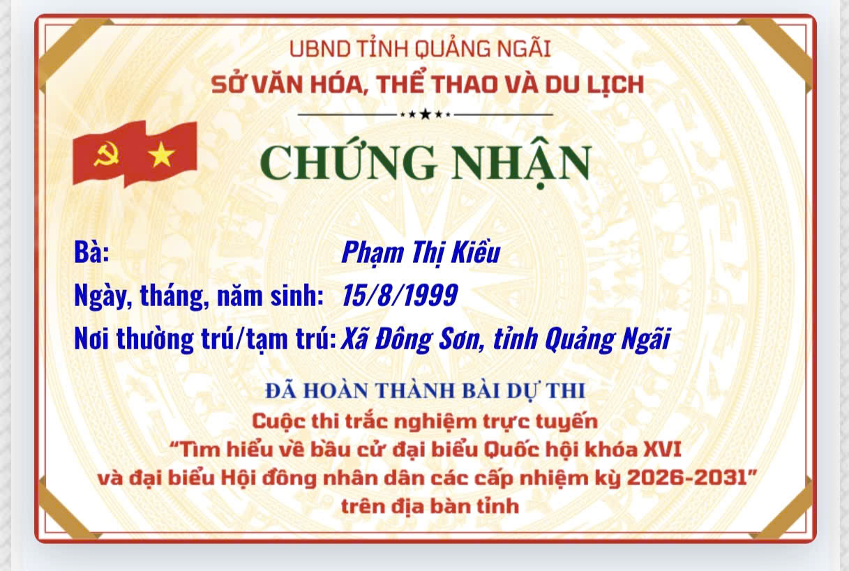 Chứng nhận “Tìm hiểu về bầu cử đại biểu Quốc hội khóa XVI và đại biểu Hội đồng nhân dân các cấp nhiệm kỳ 2026–2031”