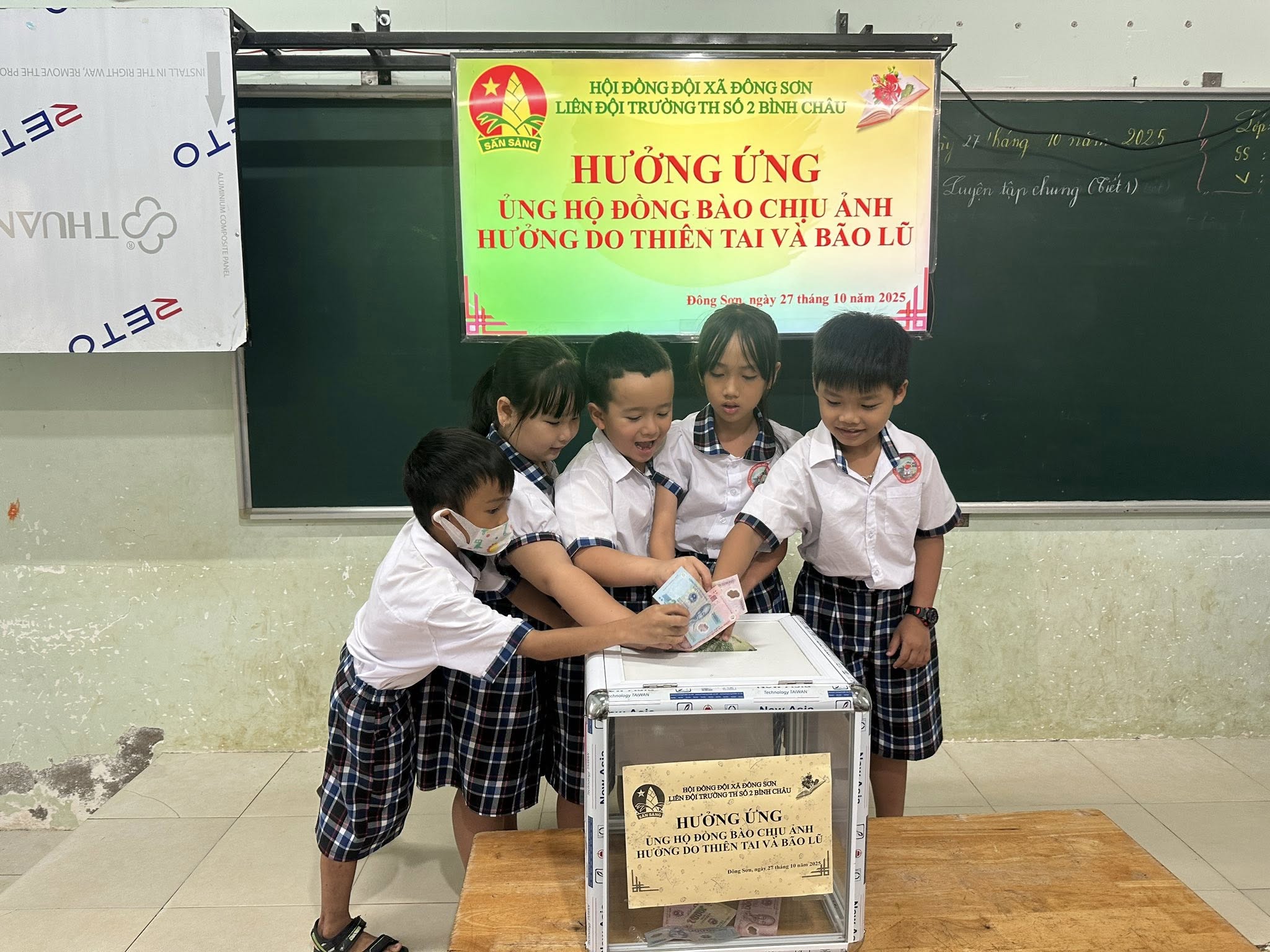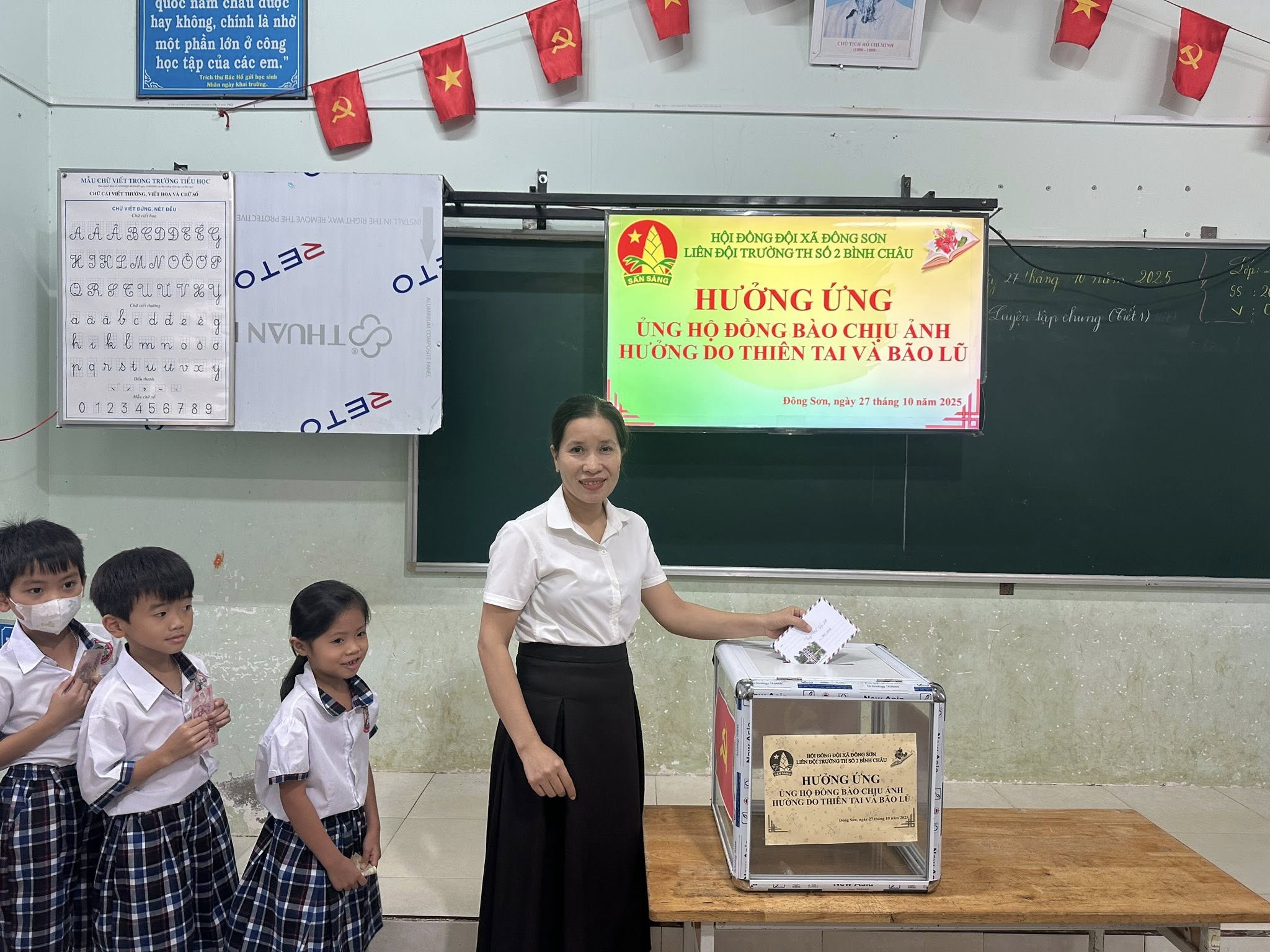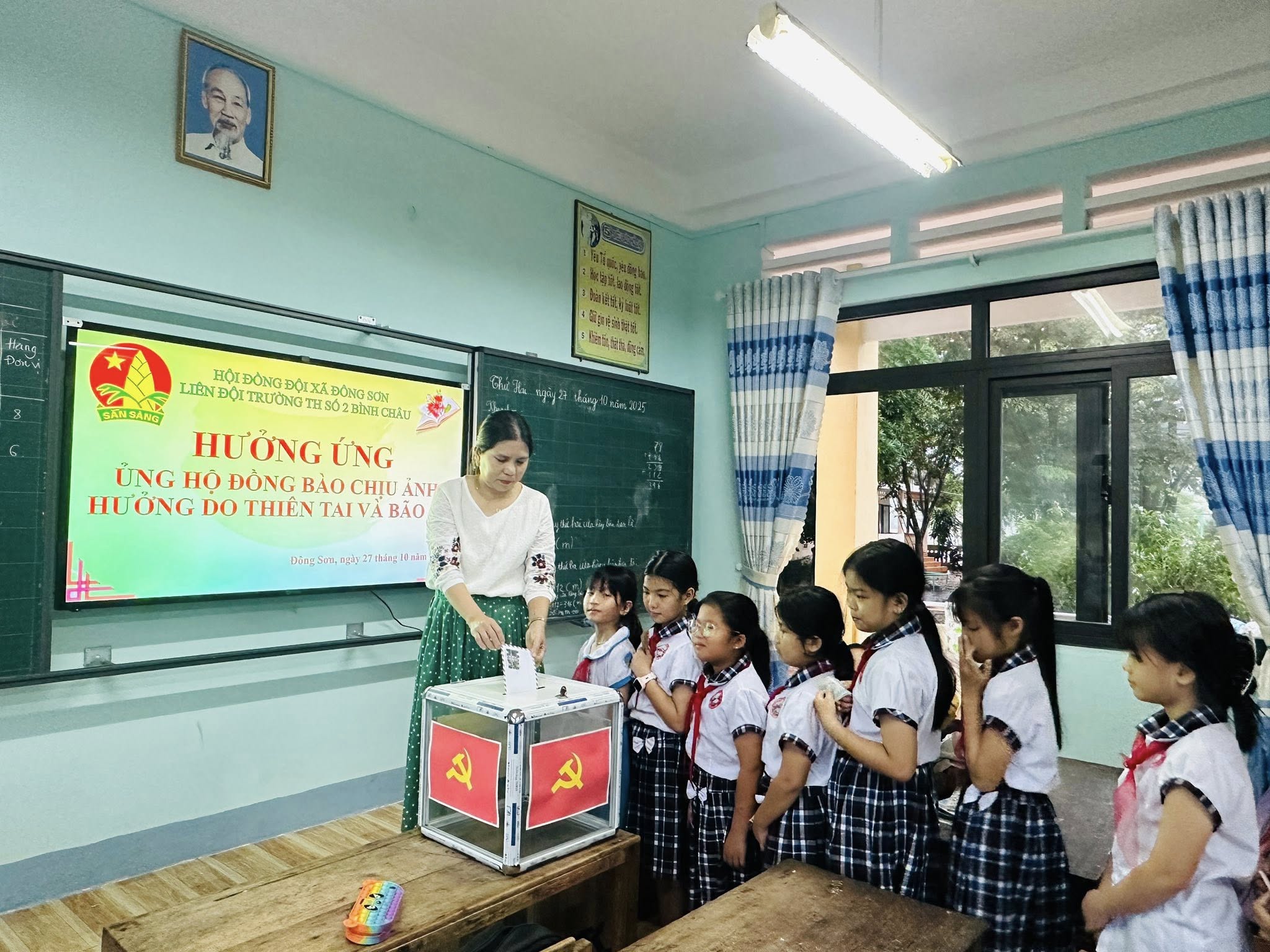 Trường Tiểu học số 2 Bình Châu hưởng ứng ủng hộ đồng bào chịu ảnh hưởng do thiên tai và bão lũ