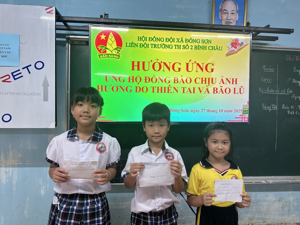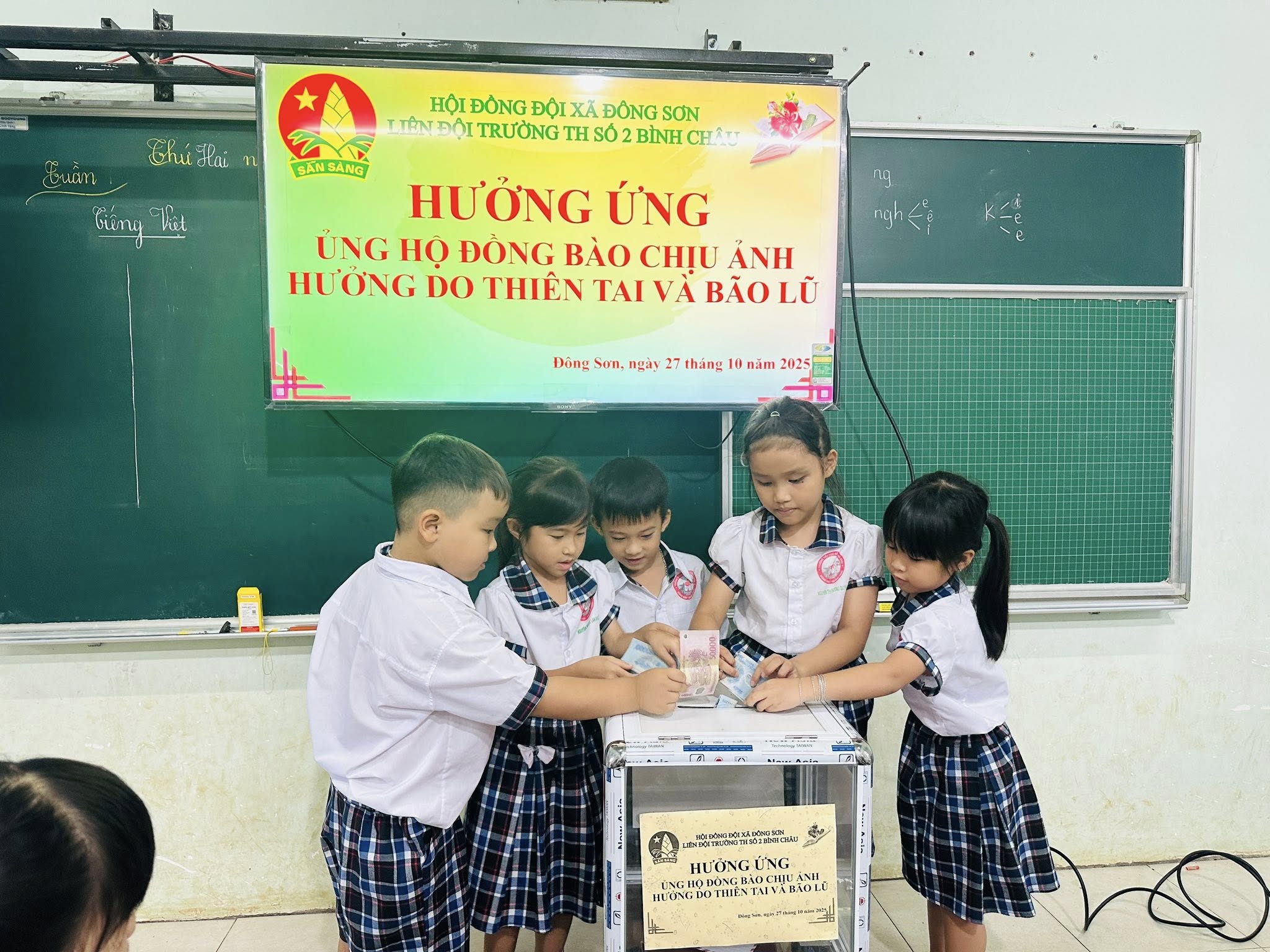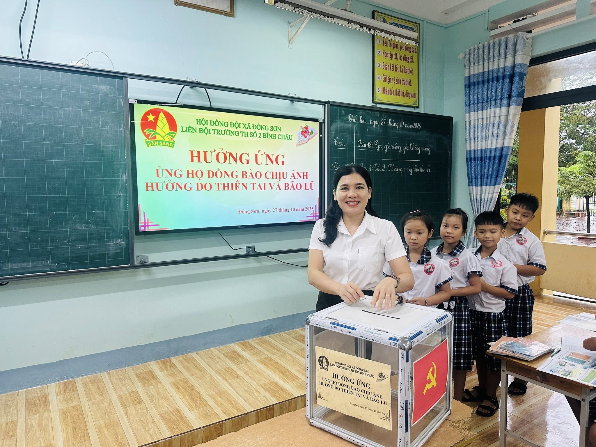 Trường Tiểu học số 2 Bình Châu hưởng ứng ủng hộ đồng bào chịu ảnh hưởng do thiên tai và bão lũ